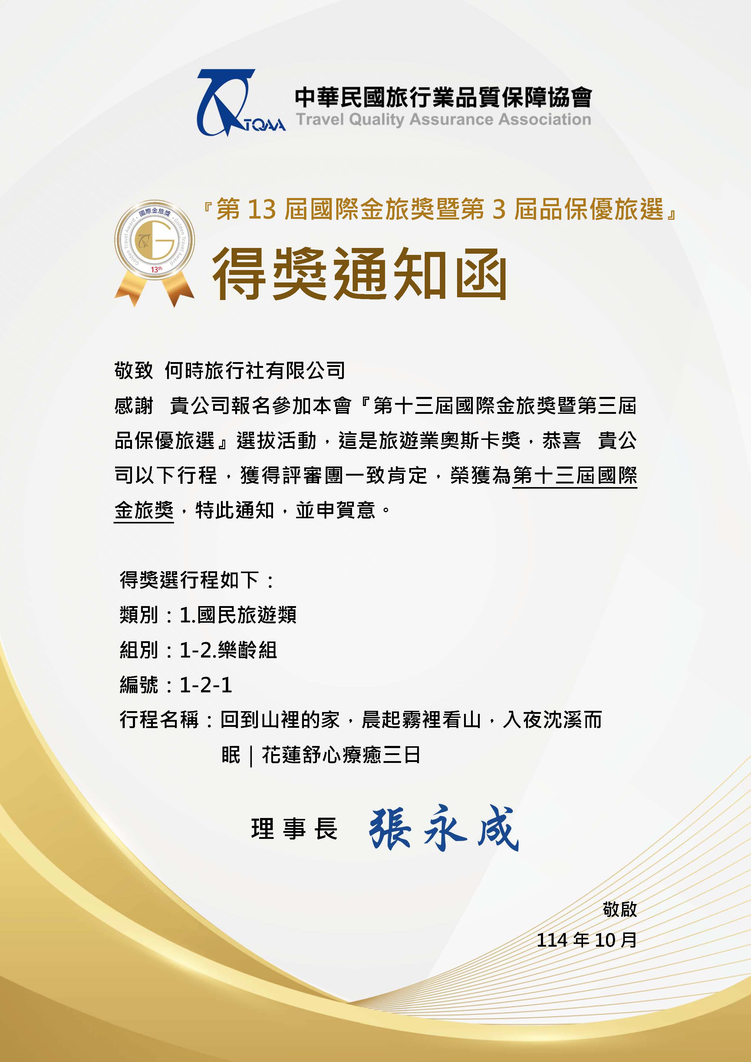 獲頒13TH國際金旅獎殊榮~經典太魯閣晶英酒店x勤天花蓮館深度三日|回到山裡的家、晨起霧裡看山、入夜枕溪而眠 | 6 | NT$8,999 | 可報名 |