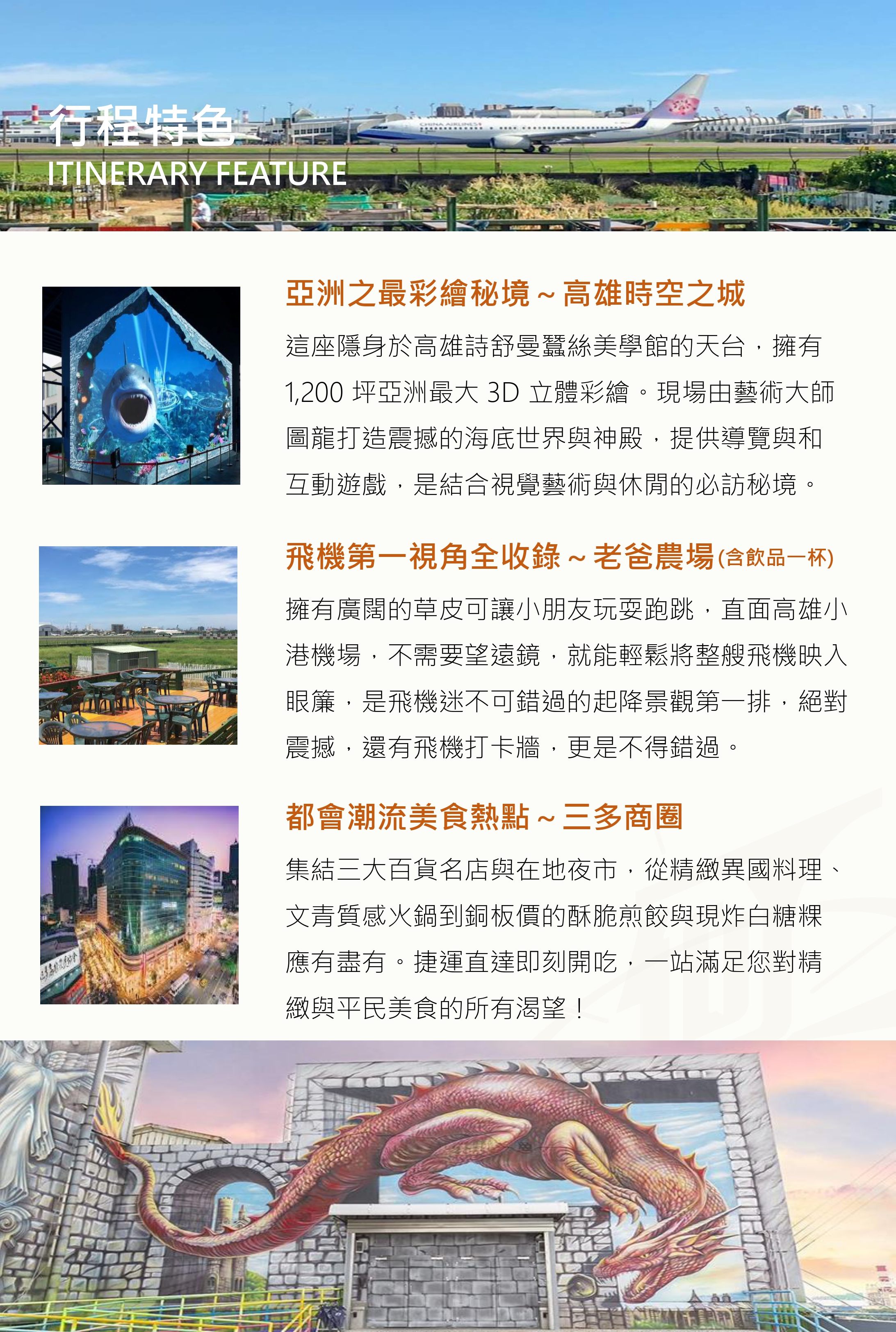 景點及餐食安排將依各出發日期與當地實際狀況(如景點休園、無法預約或其他不可抗力因素)作適度調整。