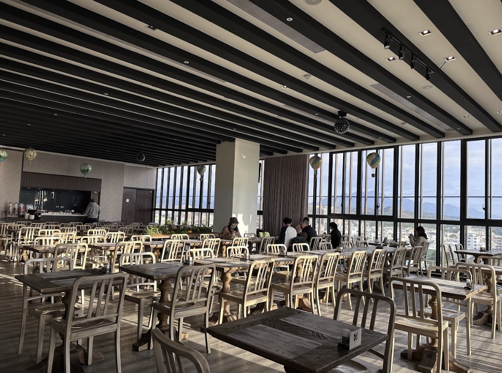 位於飯店十樓的晨間餐廳,是全台東唯一能看到山海的景觀早餐廳,的彷彿踏入一部以台東風土為靈感的立體食藝詩篇。這座由在地食材與主廚創意交織而成的晨光盛宴,在朝霞漫入的窗景中展現著山脈曲線與海洋色澤交錯的豐饒弧線,餐檯上繽紛的在地鮮食如大地的指紋,在晨光中緩緩甦醒。整座餐廳會漫開現磨咖啡與窯烤麵包的香氣交響,那是廚藝與土地對話的滋味語言。
