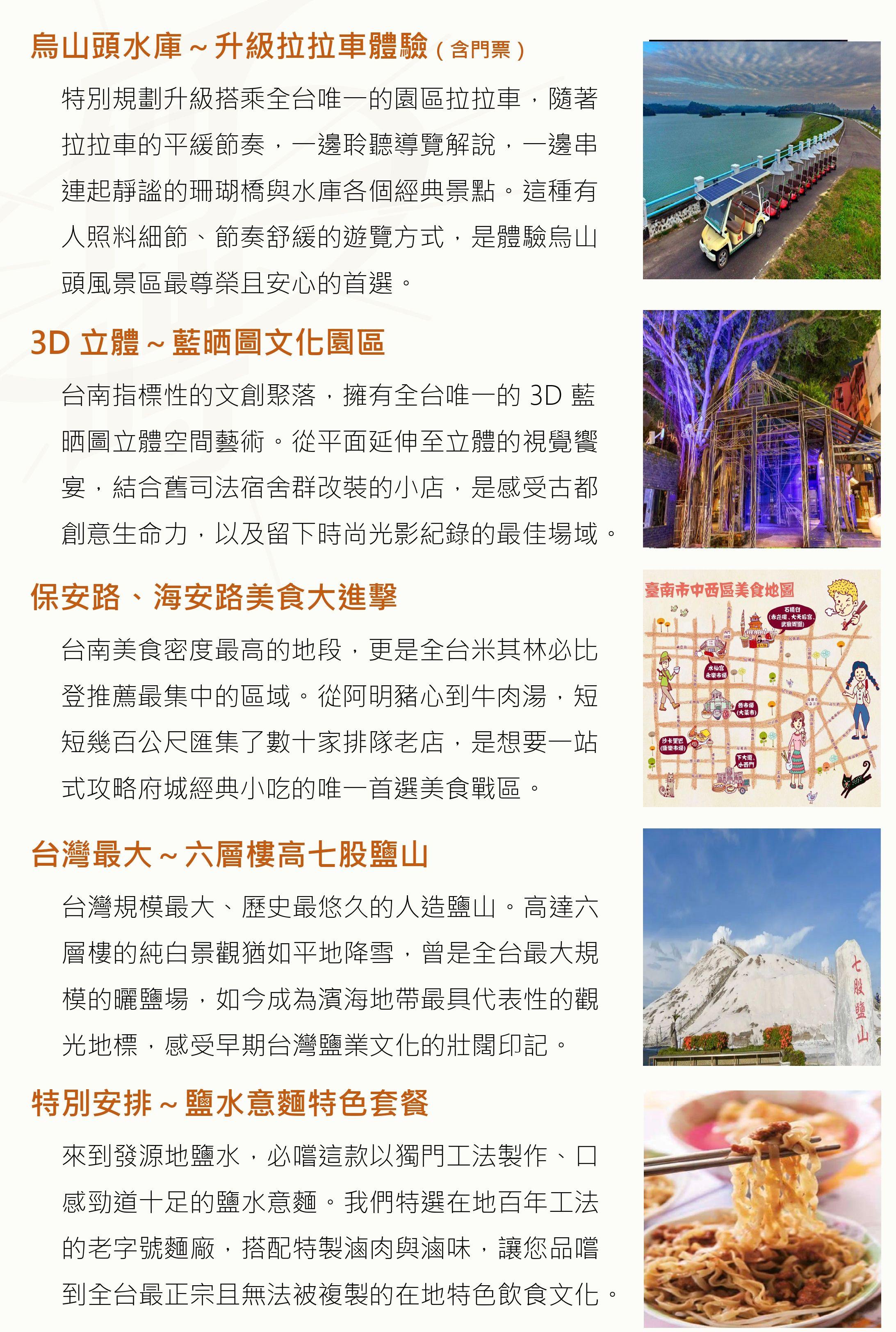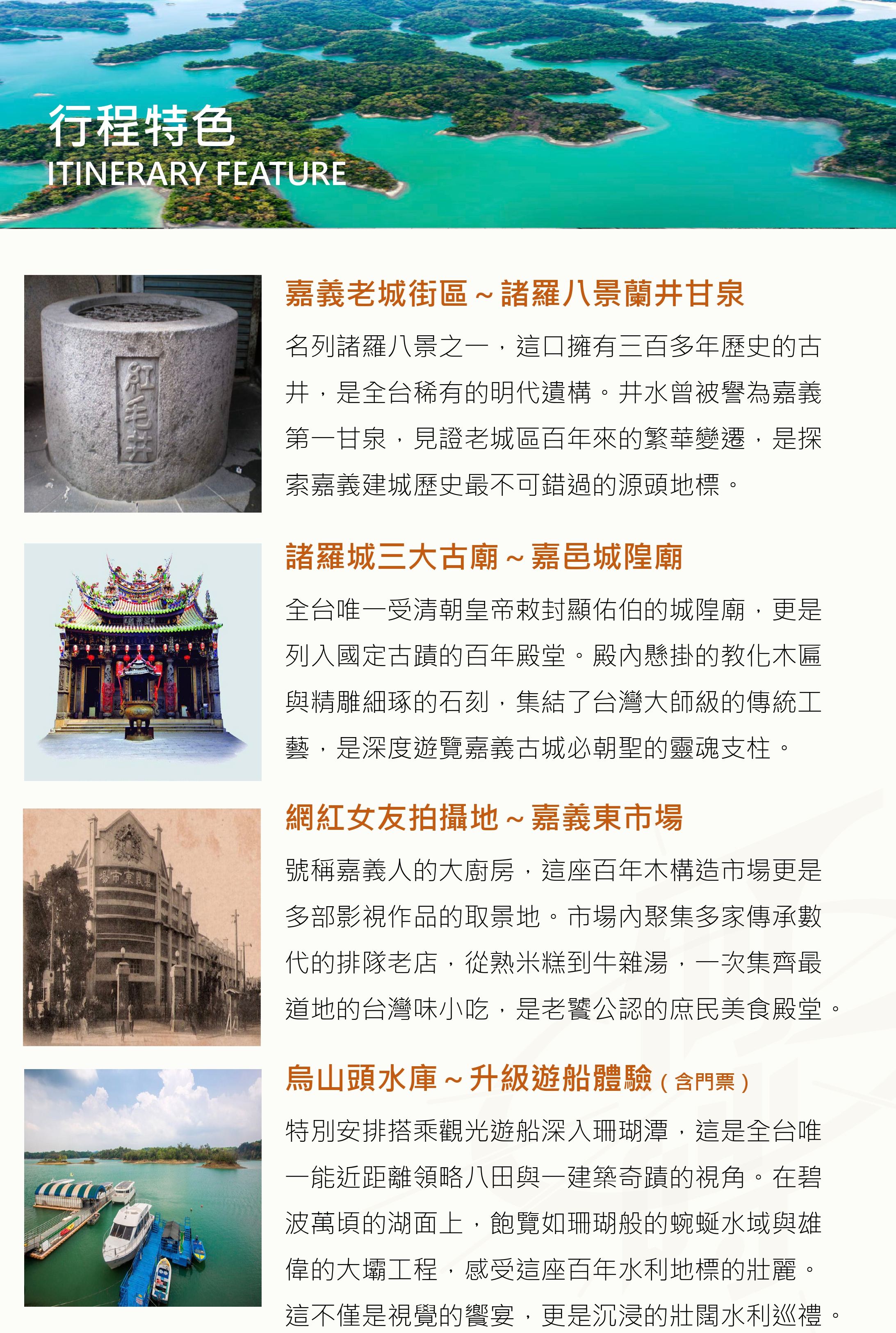 特選台南南兜漫旅二日|南國慢調香~沉醉諸羅甘泉與府城漫旅,用一場老派浪漫慢燉舊時光 | 24 | NT$2,999 | 可報名 | |