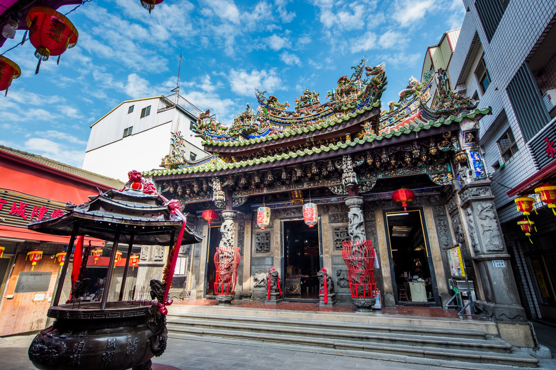 走進香火繚繞的【嘉邑城隍廟】,彷彿踏入一座會呼吸的宗教藝術殿堂。這座名列諸羅三大古廟的百年聖域,以守護城池的威嚴與慈悲為靈感,在雕樑畫棟間綿延著信仰的溫度——藻井層疊如天穹垂降的神聖結構、神像眉目間流轉的千年威儀、籤詩翻飛時牽動的命運軌跡,每寸空間都是人神對話的場域。您可以仰觀正殿「綱紀嚴明」匾額下,城隍爺審視陰陽的肅穆目光;輕觸石獅被香客撫得溫潤的脊背,感受祈願累積的觸覺厚度;靜立於後殿冥法司前,看彩繪門神在煙縷中若隱若現的守護姿態。這裡不只是一座廟宇,更是一處讓敬畏與寄託具象化、讓俗世與神界產生共鳴的靈性結界,邀請您在此聆聽籤筒搖響時,屬於這座古城的集體心靈低語。