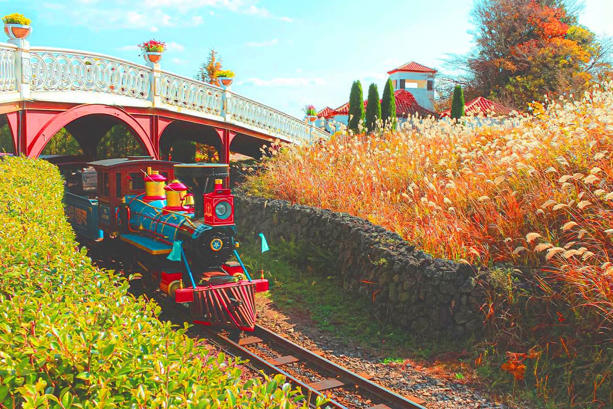ECO LAND 位於濟州天然林區,以英國蒸汽火車為主題,重現19世紀風格的小火車體驗。遊客登上仿製英國巴爾溫蒸汽機車的小火車,穿梭於廣闊的原始森林、湖泊與花園之間,沿途景致宛如走入童話秘境。園區規劃多個停靠站,包括玫瑰花園、湖畔咖啡屋及草原遊憩區,每一站都能下車探索、拍照與散步。這趟旅程結合自然與懷舊氛圍,特別適合親子、情侶或喜愛慢旅的遊客。搭乘森林小火車,能輕鬆欣賞濟州的自然美景與浪漫氛圍。
