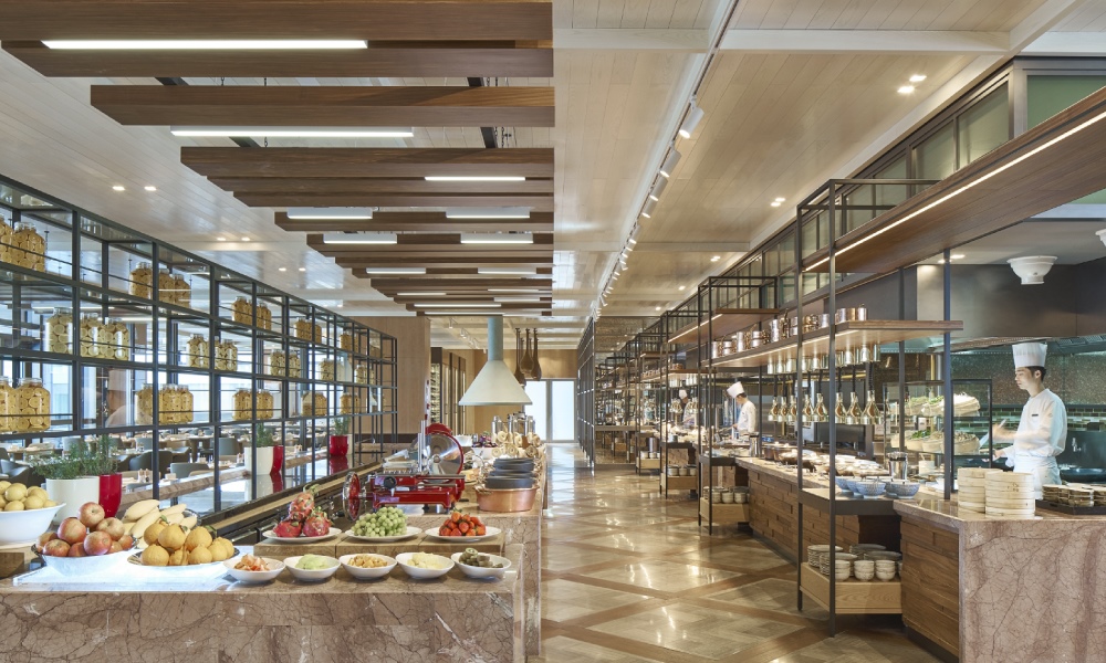 神話世界綜合渡假村內的【五雲閣】自助餐廳,以豪華規模與頂級料理著稱。餐廳設計華麗,提供韓式、日式、中式與西式佳餚,還有新鮮海鮮、濟州在地食材與甜點專區,並搭配酒水暢飲,滿足各類味蕾。這裡是遊客體驗高端饗宴的首選。渡假村內的五星萬豪酒店則以舒適客房與完善設施受到青睞,擁有泳池、健身房與國際水準的服務品質。結合美食與住宿體驗,旅客能在此享受完整假期,感受濟州島最奢華的度假氛圍。