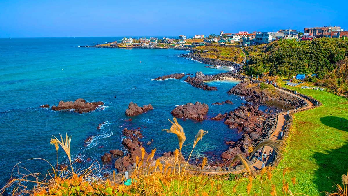 漢潭海岸散步路位於濟州西北部涯月,全長約1.2公里,沿著蔚藍大海延伸,能近距離欣賞火山岩岸與浪花交織的壯麗景色。這裡也是人氣綜藝《孝利家民宿》的拍攝地,因李孝利與李尚順夫婦的生活紀錄而聲名大噪,吸引許多粉絲前來朝聖。步道兩旁的涯月海岸咖啡街聚集特色咖啡館與甜點店,許多店家都擁有絕美海景落地窗,能邊品嚐咖啡邊欣賞夕陽,氛圍浪漫悠閒。無論是追星朝聖、情侶約會,還是單純享受海風與咖啡香,這裡都是濟州島旅遊不可錯過的療癒散步地點。李孝利與IU帶著狗散步的那條路,看著蔚藍的大海、鮮花點綴其間,一邊談心事,一邊開玩笑,最後坐在漢潭海邊的石頭上,望著緋紅的太陽,逐漸消失在海平線上,難以言語的美麗,讓您頓時忘卻心中的煩憂,就讓我們跟著明星一起來感受吧!