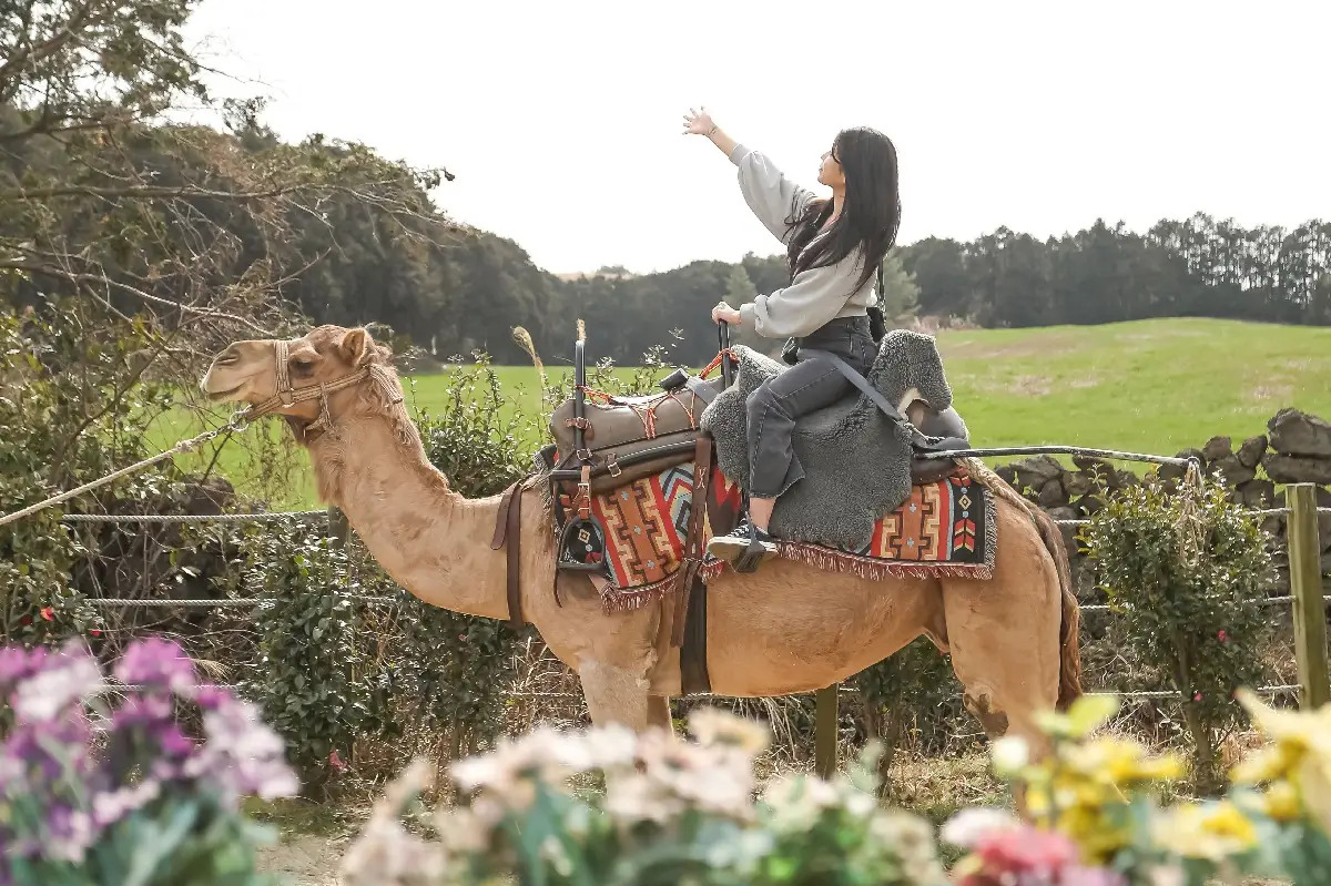 騎駱駝體驗是濟州島獨特的休閒活動,帶領旅客彷彿置身於沙漠之中。園區內駱駝性情溫馴,遊客可在工作人員引導下,安全地騎乘漫步於沙地小徑,感受與眾不同的異國氛圍。行程通常包含簡單的駱駝介紹、互動餵食與合影,讓大人小孩都能親近這些可愛巨獸。特別設計的步道配合濟州藍天與自然景觀,讓拍攝照片更具特色,成為旅遊回憶的一部分。對於喜愛體驗新奇活動的旅客,這項行程不僅充滿趣味,也能增添濟州旅行的難忘亮點。