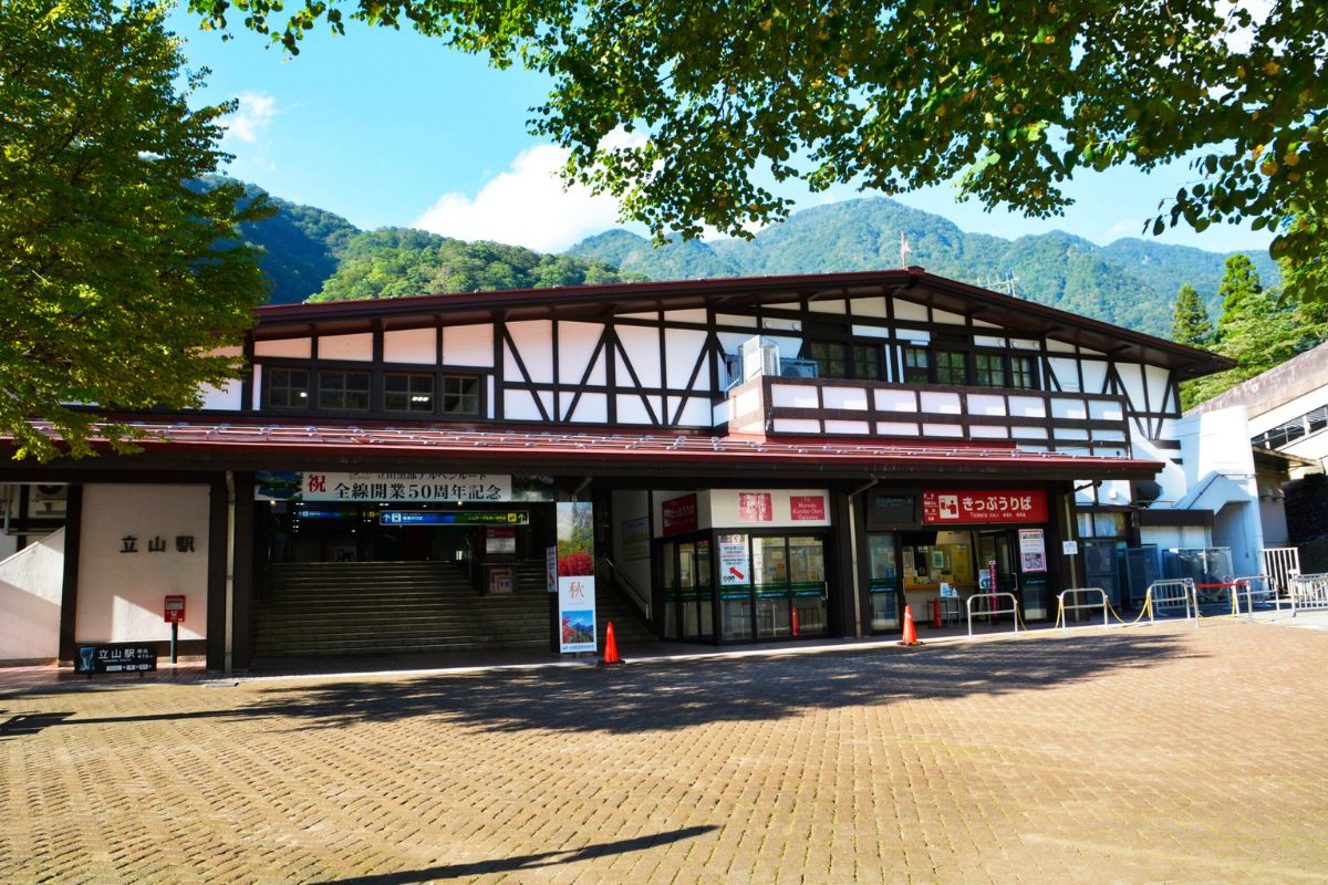 立山車站位於富山縣,是進入立山黑部阿爾卑斯山脈路線的重要入口。從此站可搭乘立山纜車與高原巴士一路登上立山連峰,前往室堂、雪之大谷等知名地點。站區山風清涼,四季景緻分明,每年 4~6 月的雪壁開山更吸引世界旅人前來朝聖。車站本身維持樸實風貌,周邊綠意盎然,是進入高山世界前的過渡空間。旅客從此站出發,象徵正式踏上日本最壯麗的高山景觀之旅。