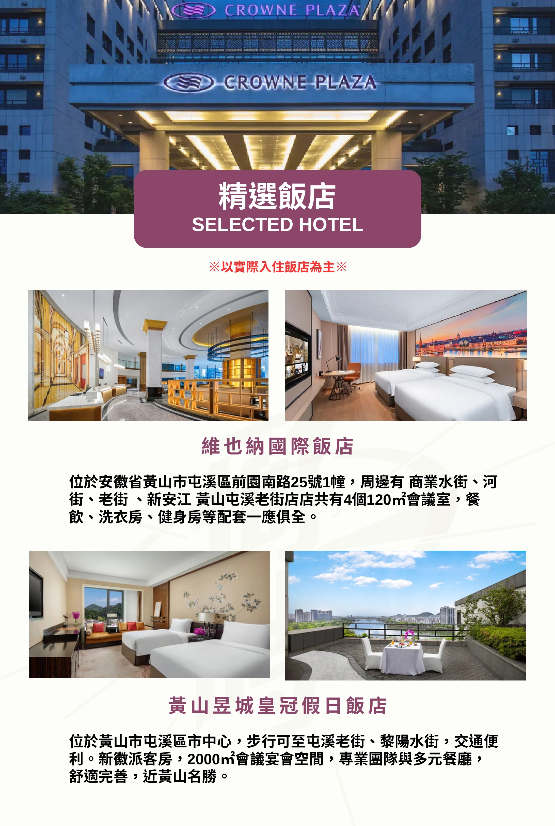 住宿:五星黃山昱城皇冠假日酒店 或同等級