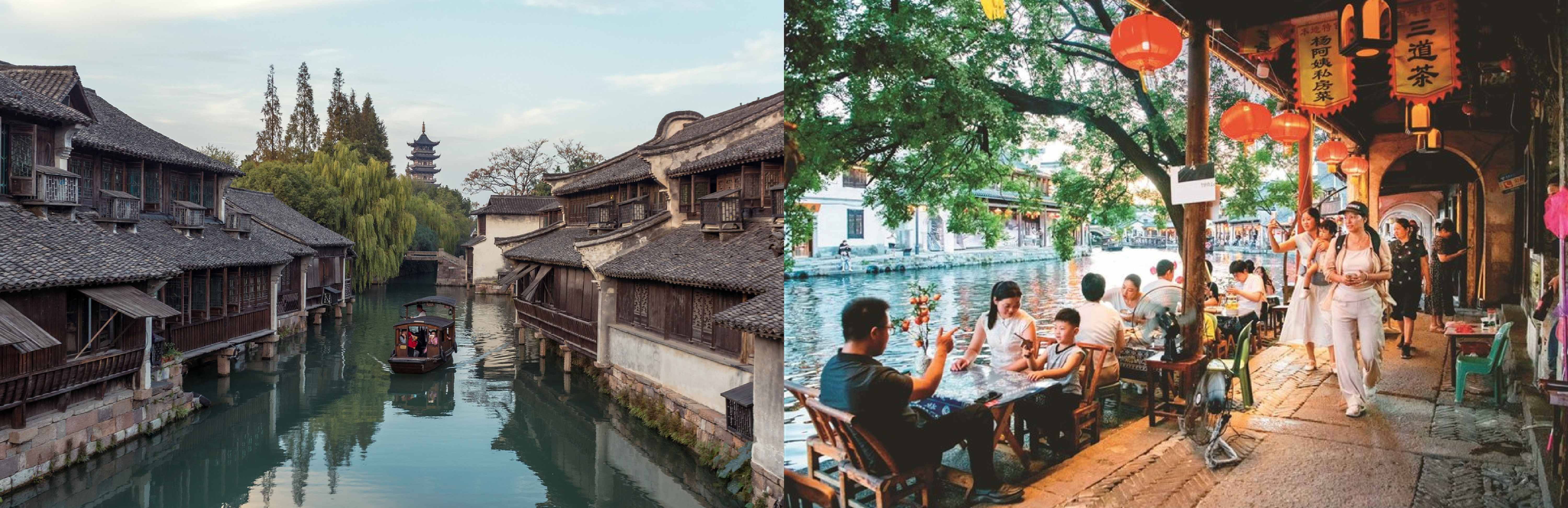 是一個有將近八百年歷史的水鄉古鎮,更是大陸江南六大水鄉古鎮之一,這裡也曾是最富庶的江南古鎮,整個南潯古鎮的景色相當秀美、幽靜,河道兩旁的街景、柳樹、石板路相當的有古韻味,也吸引了不少攝影好手來此取景拍照,街道上也有不少當地小吃、傳統服飾的店家,都很值得放慢步調在此一遊;除此之外,在南潯古鎮裡也有不少的歷史古蹟,小蓮莊、張石銘舊宅、嘉業堂藏書樓、張靜江故居…等,還能體驗水鄉古鎮遊船、欣賞水鄉婚禮表演…等活動。