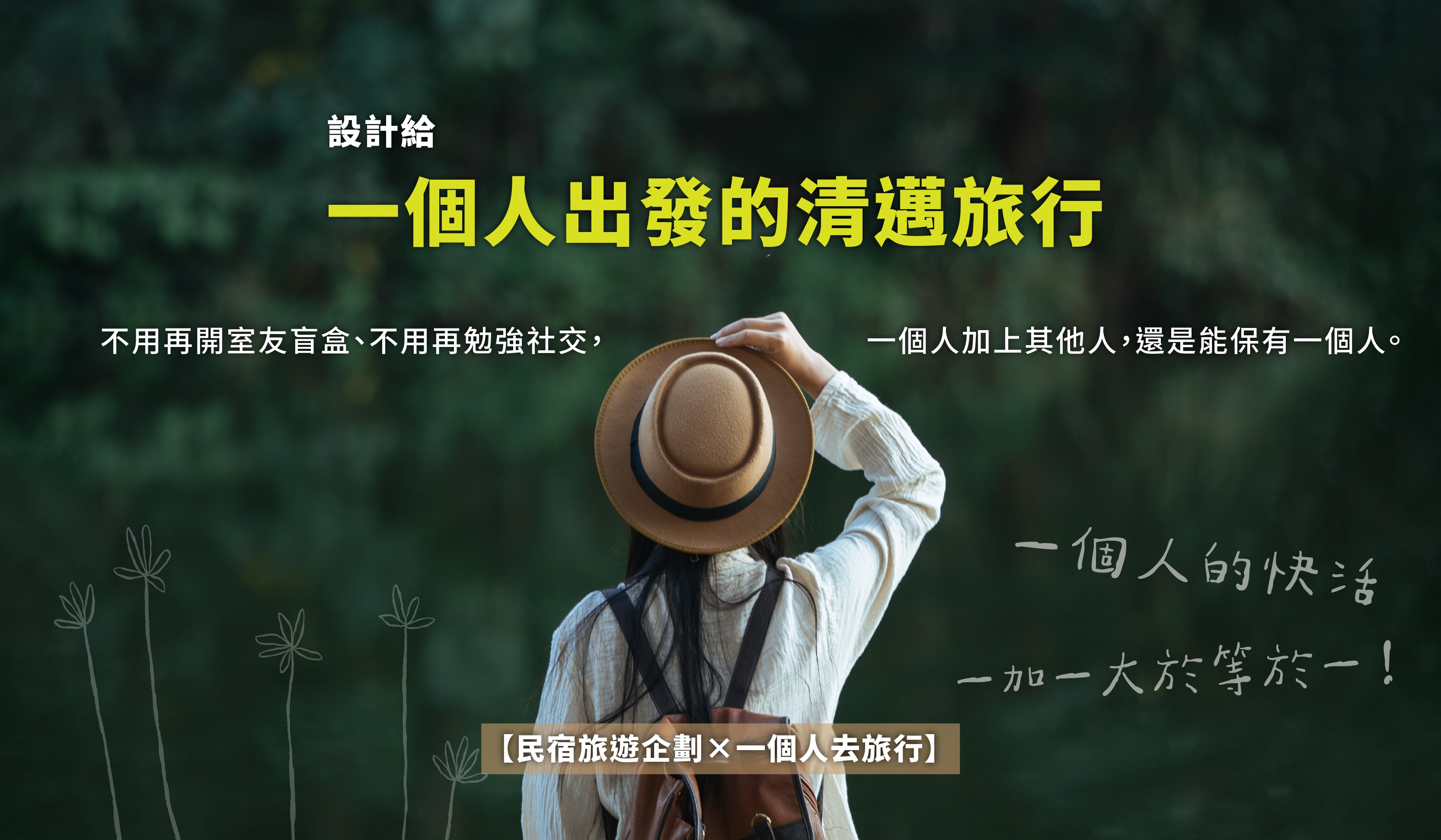 在這個團體,所有人都會是「一個人報名參加」,你不用再去回答為什麼只有你自己來的問題,也不用再有群體的壓力,我們想透過團體的規劃,讓你在行程中享有團體的便利,同時還是保有一個人的快活。