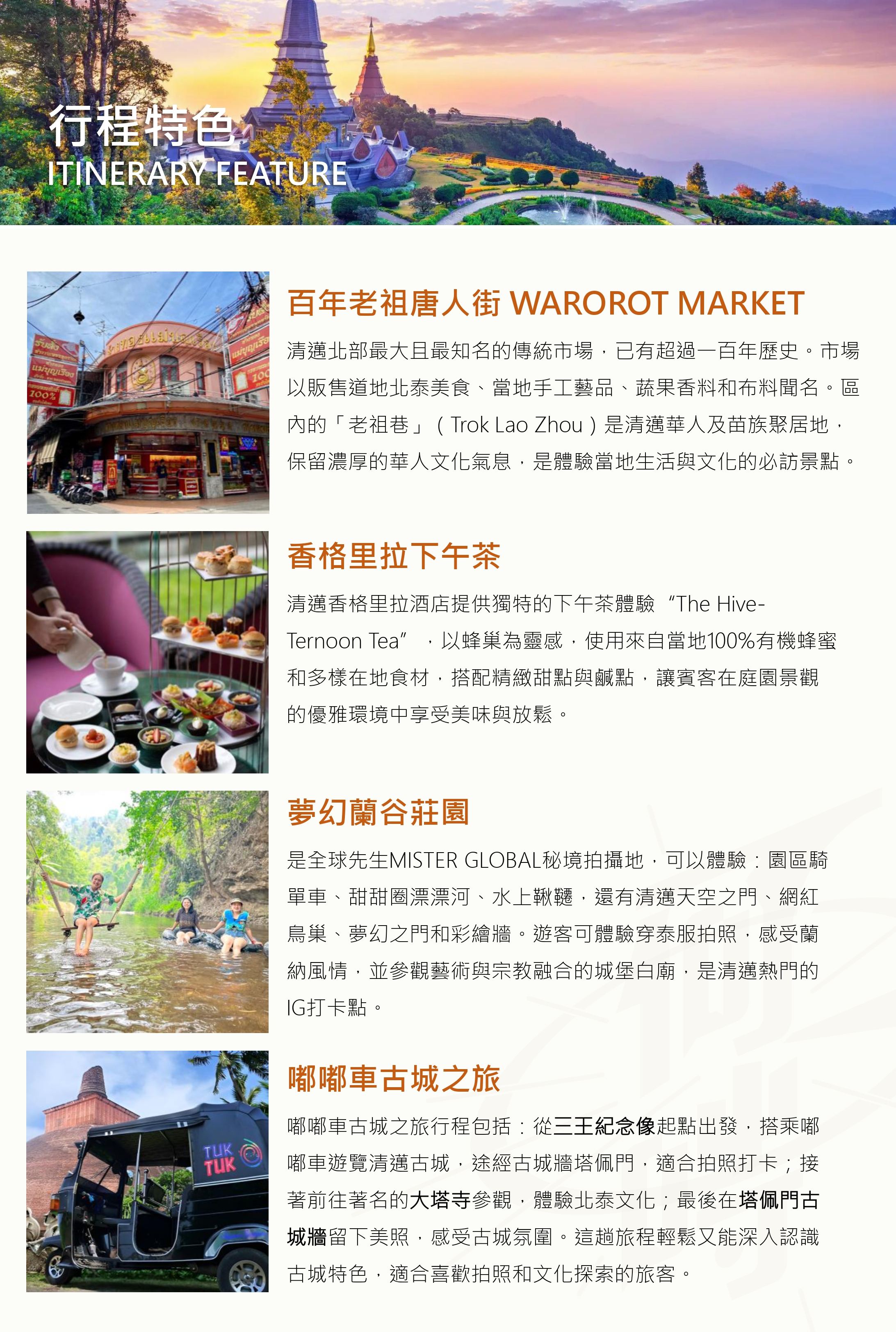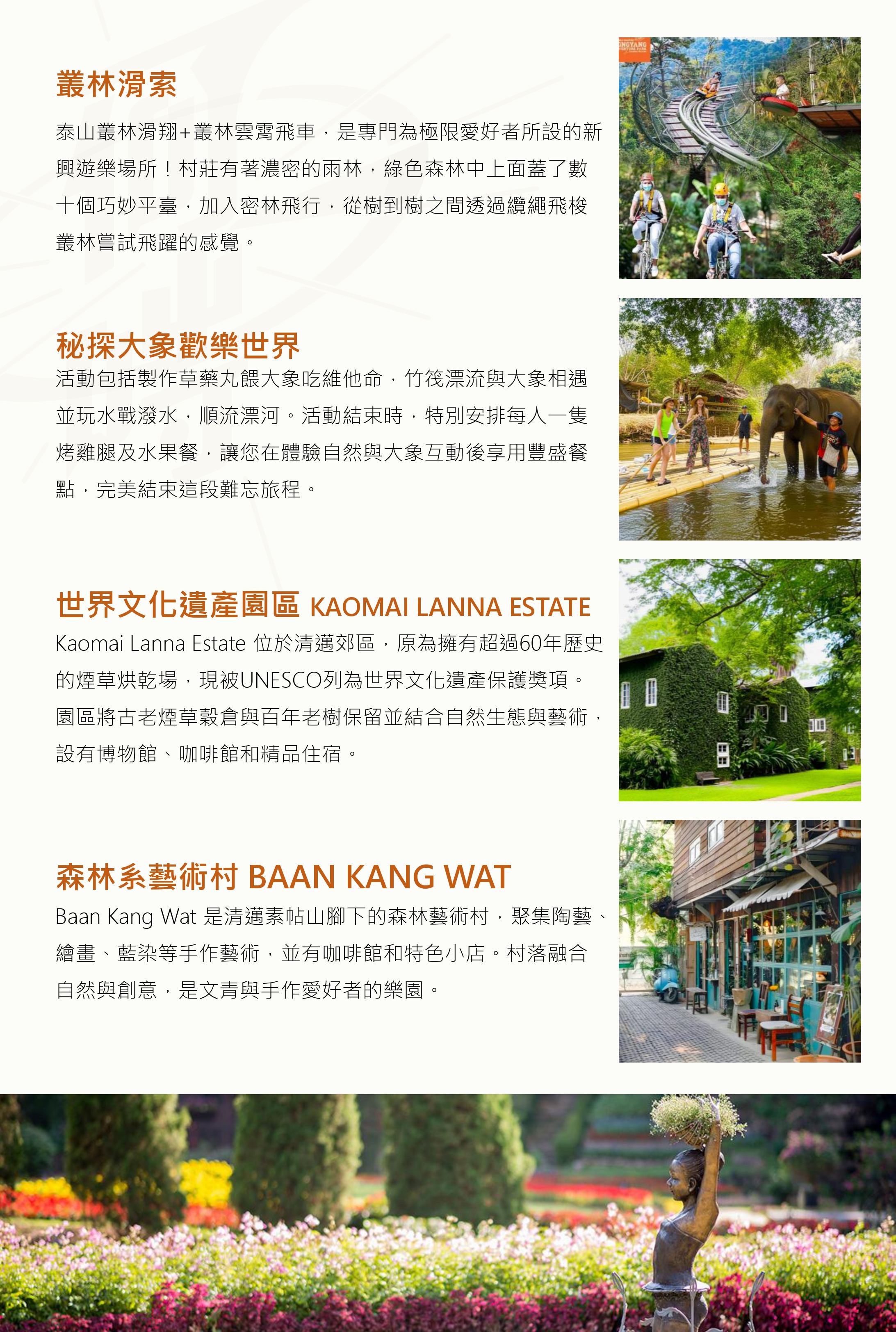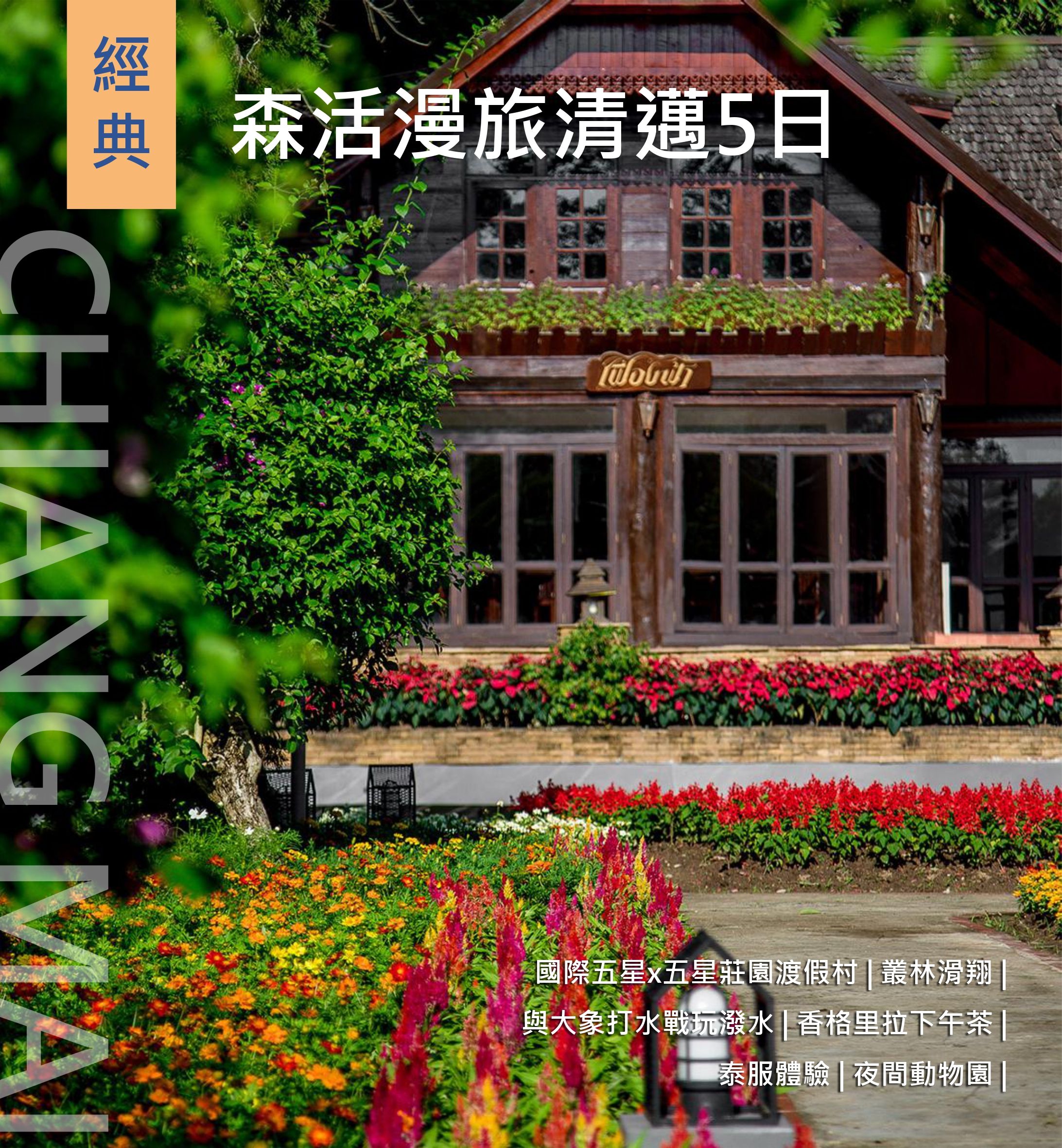 經典森活漫旅清邁5日 | 國際五星x五星莊園渡假村、叢林滑翔、與大象打水戰玩潑水、香格里拉下午茶、泰服體驗、夜間動物園 |