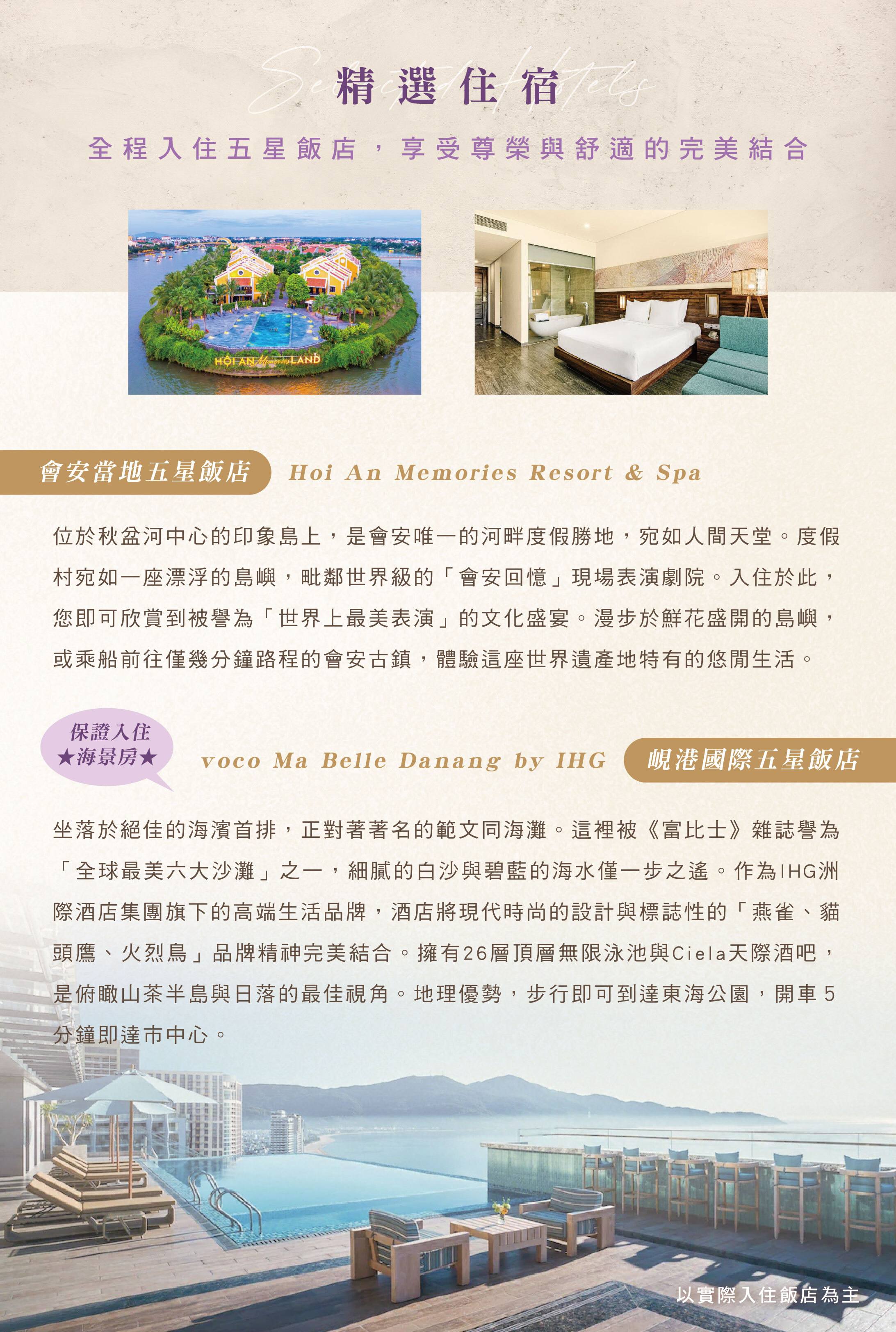 【峴港國際五星飯店 voco Ma Belle Danang by IHG(保證住海景房) 或 Crowne Plaza Danang City Centre】 或同級