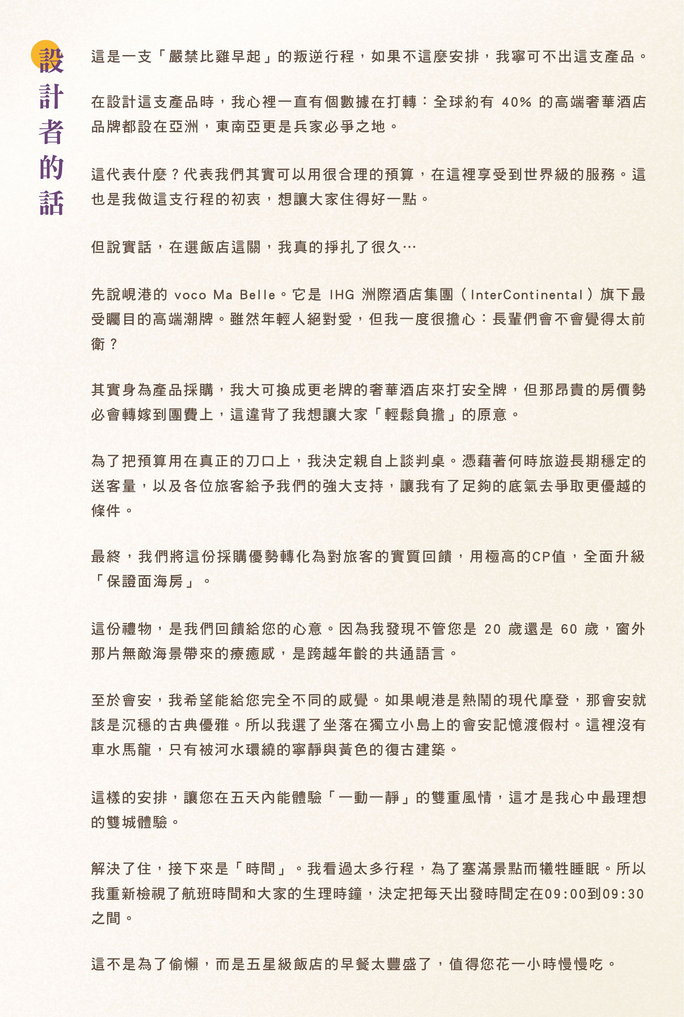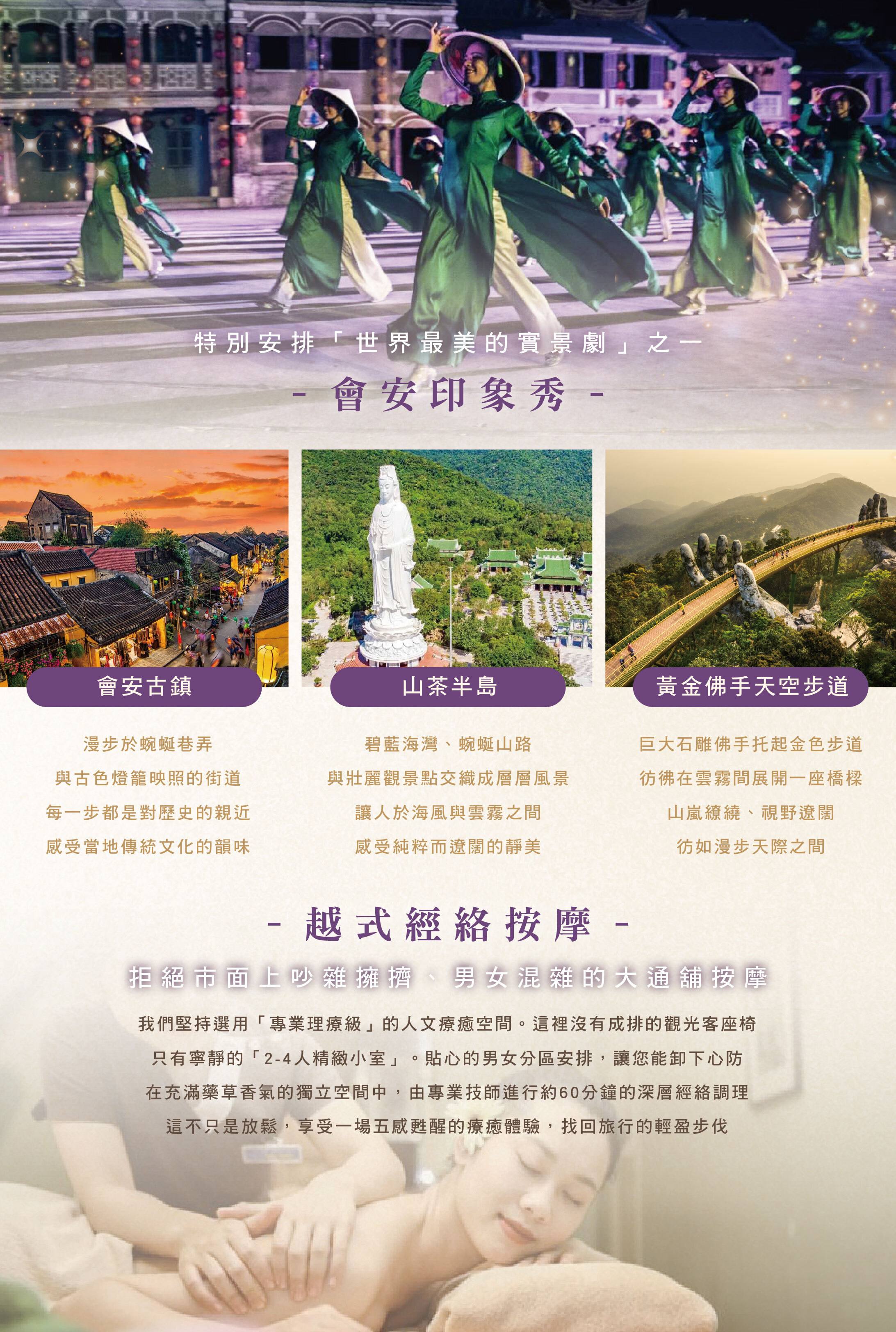 特選深峴雙城緩慢峴港5日|全程五星連泊x保證海景、雙米其林x雙午茶、龍蝦吃到飽、越式法棍直送、五感越式按摩、會安印象秀
