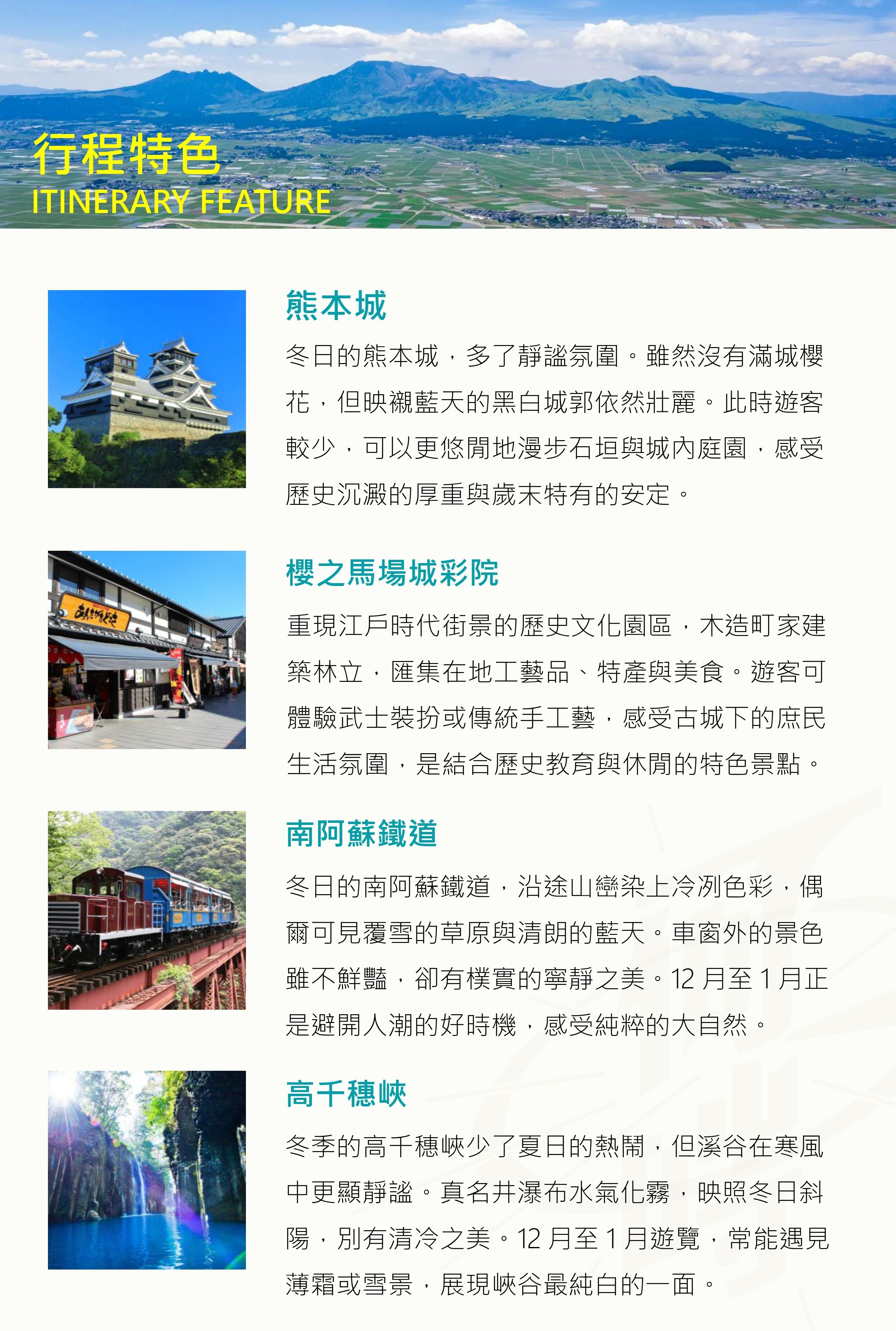南阿蘇鐵道→大觀峰~遠眺阿蘇火山→高千穗峽→阿蘇溫泉
