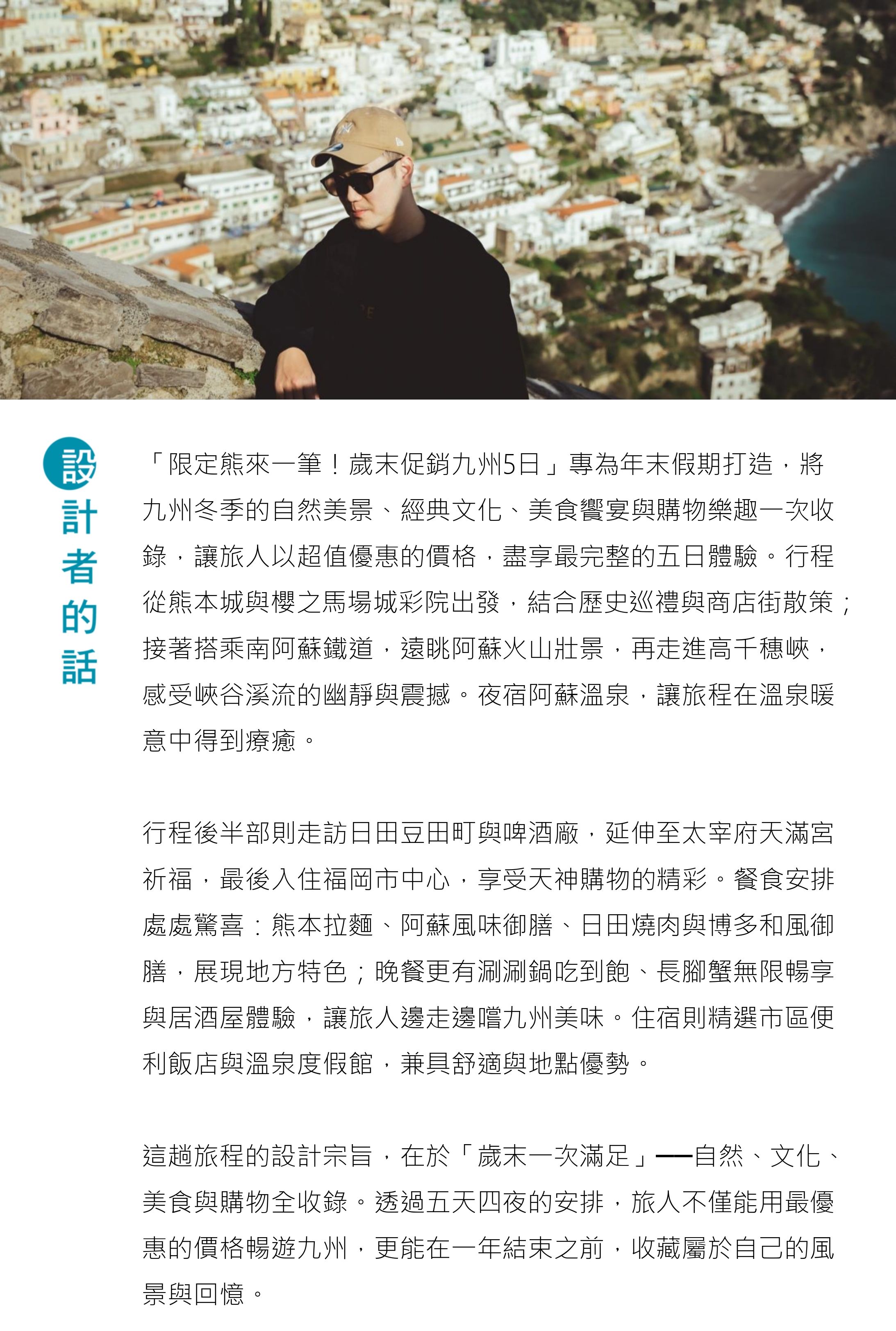 限定熊來一筆!歲末促銷九州5日|長腳蟹吃到飽、溫泉美景一次滿足。