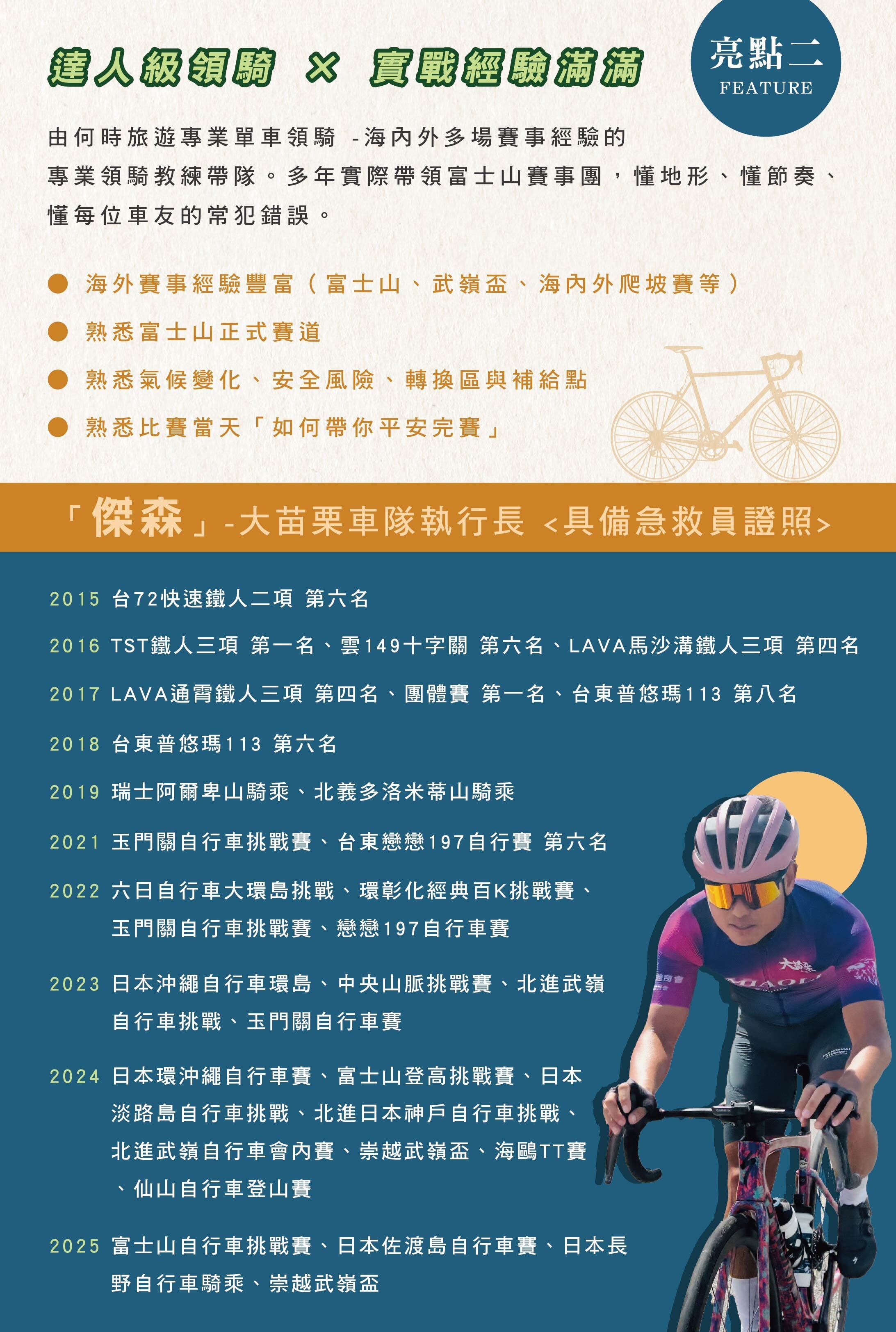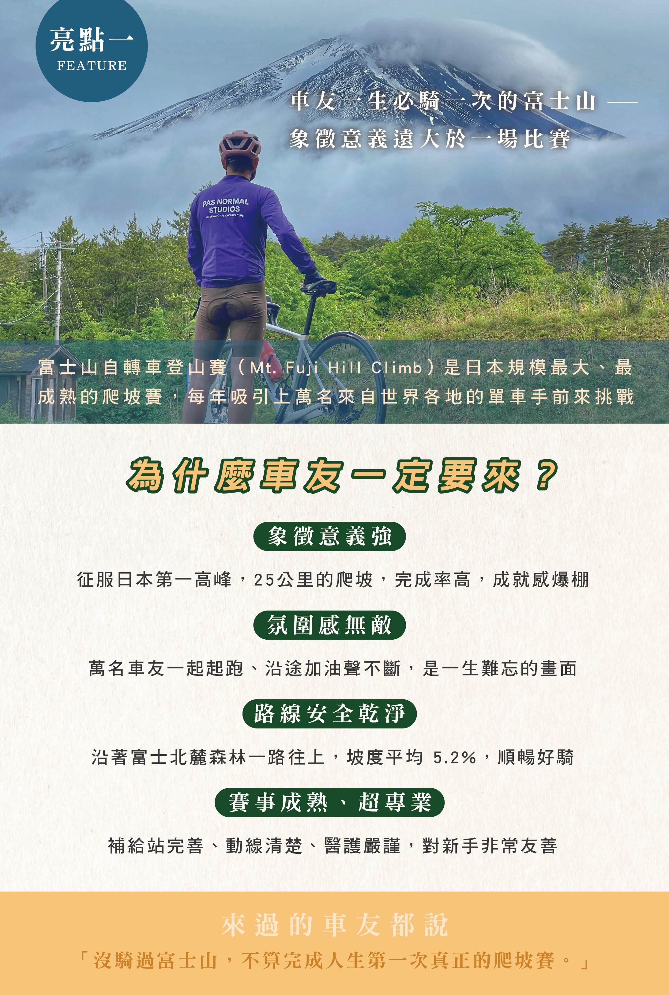 🔹比賽騎行路線以日本富士山登山賽官網公告為主,如遇狀況不同需變更住宿點,將以同等之飯店作替換