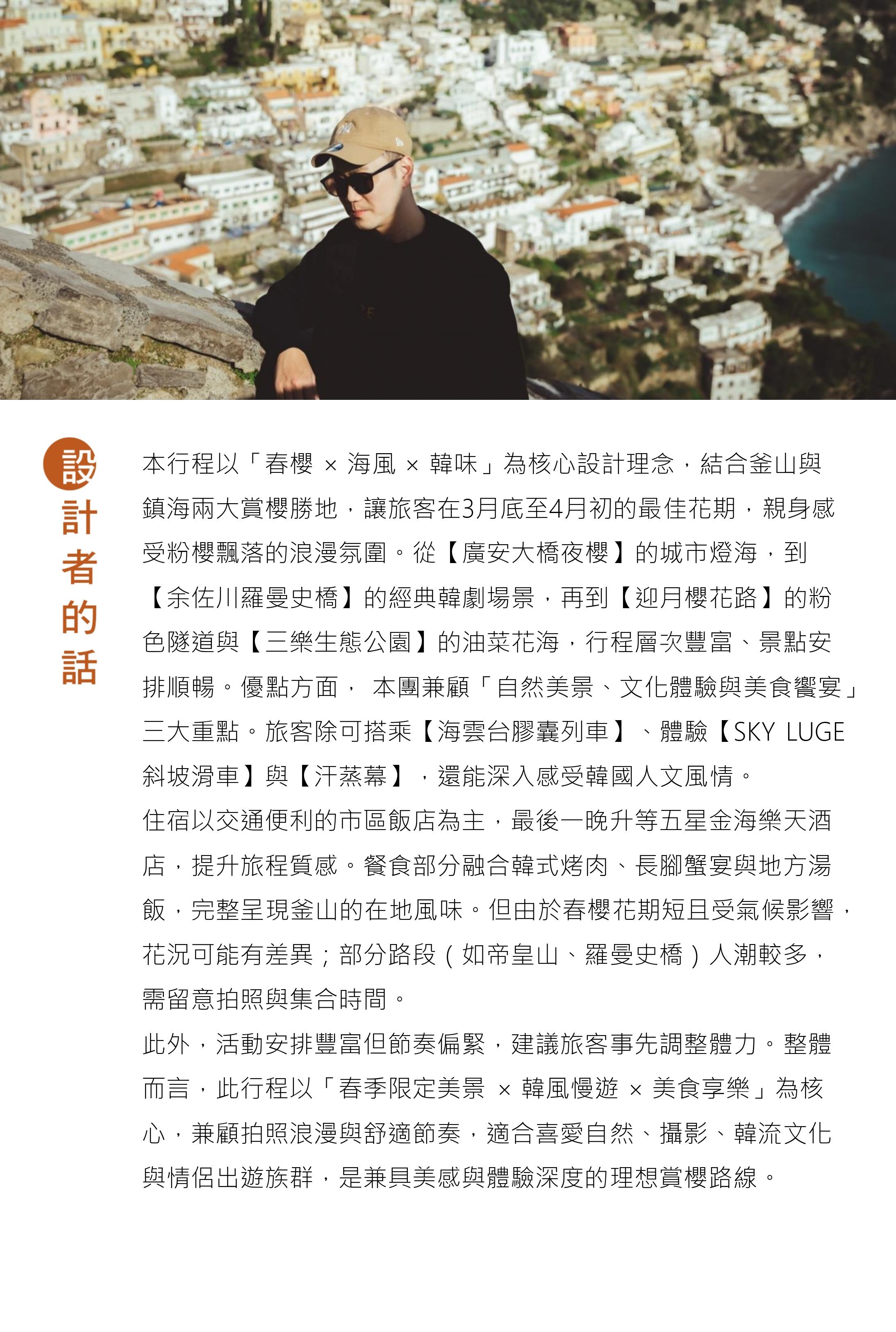 6、為了保障旅客安全與行程順暢,行程期間不接受脫隊行為。