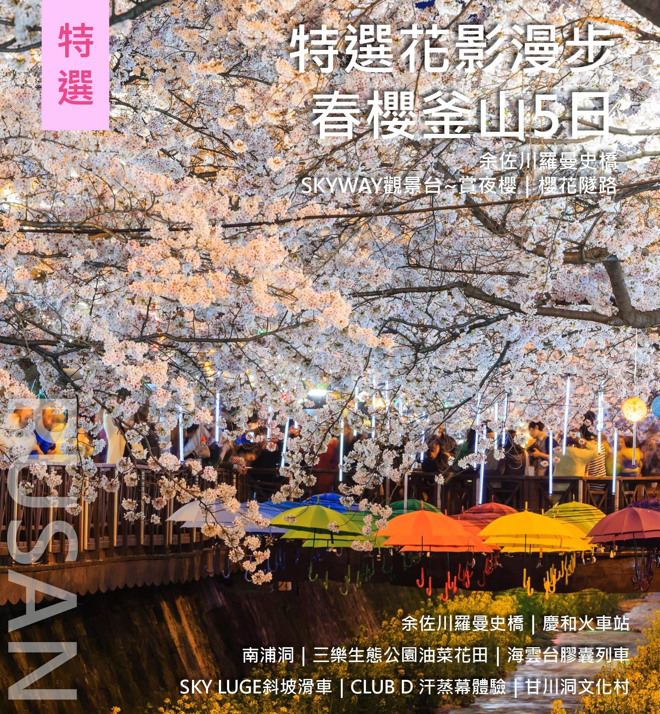 特選花影漫步、春櫻釜山5日|余佐川羅曼史橋、SKYWAY觀景台~賞夜櫻、櫻花隧路 |