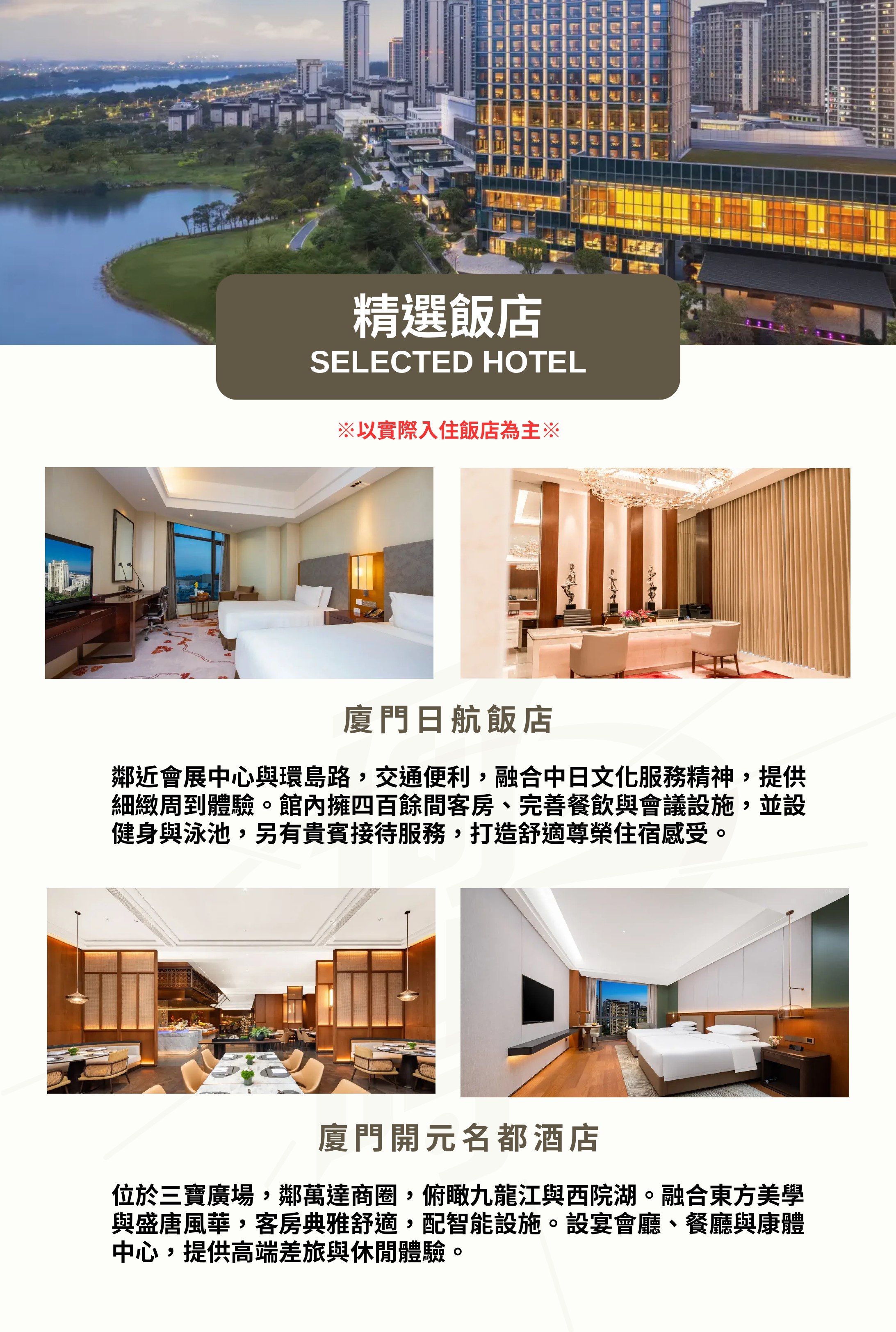 9、若行程包含飯店內早餐,餐食與服務內容(如有管家服務等)將以各飯店實際提供的項目為準。