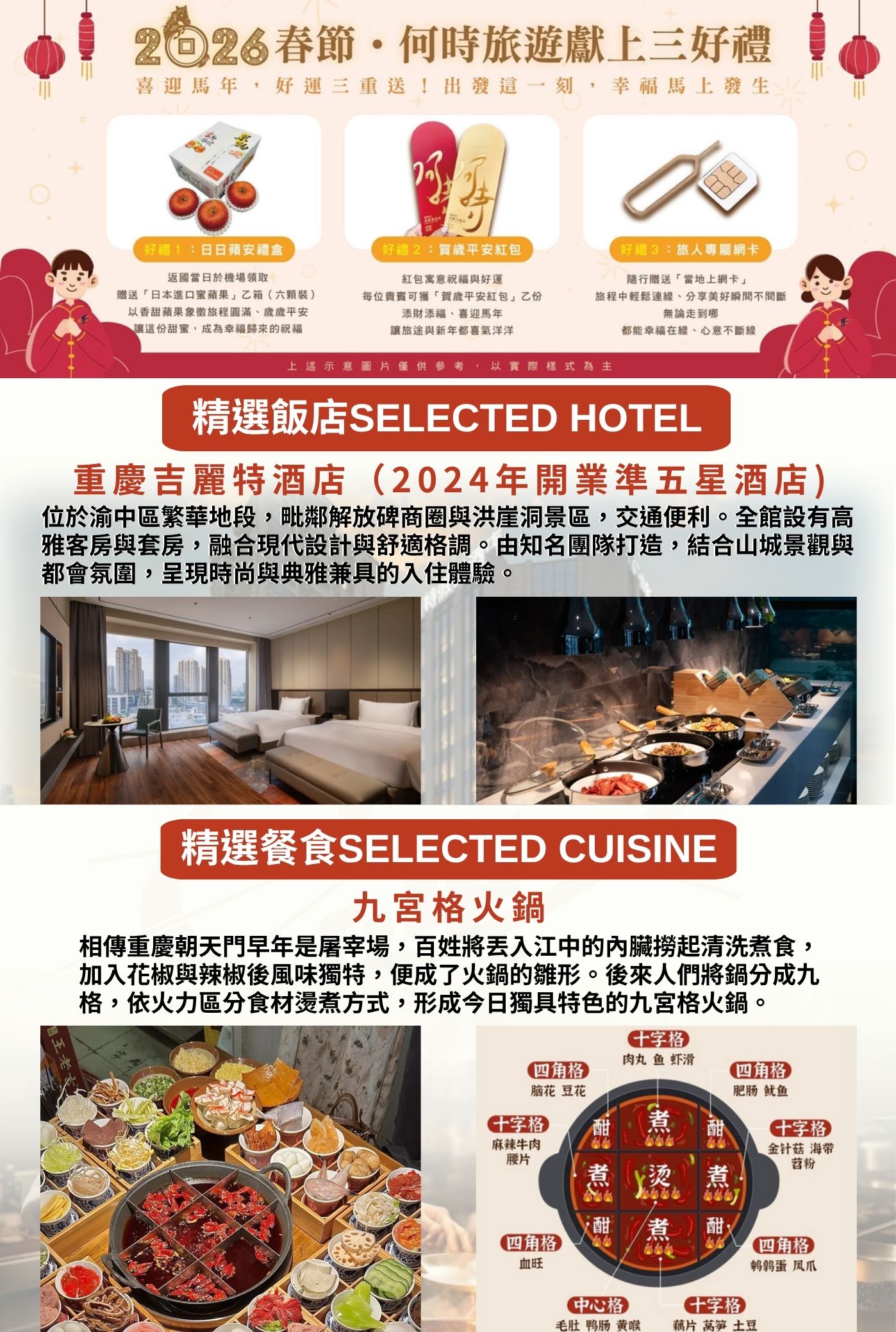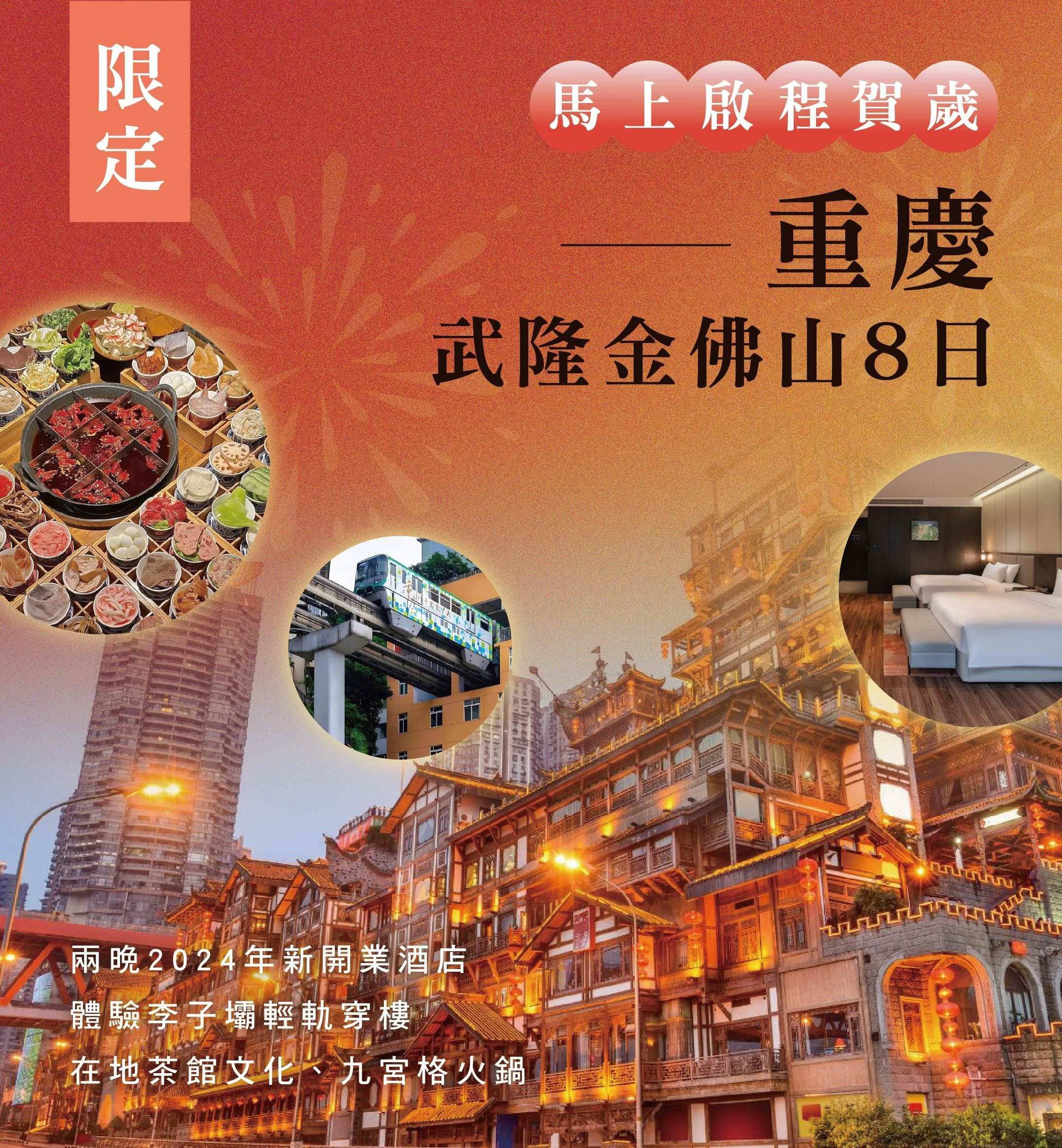 馬上啟程賀歲|限定重慶武隆金佛山8日|2晚2024年新開業酒店、體驗李子壩輕軌穿樓、在地茶館文化、九宮格火鍋 |
