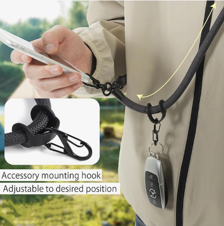 1. 手機掛繩背帶:直接把手機背在身上,手機就無法被一把抓走,會讓那些埋伏在忙碌街邊「抓了就跑」的搶匪下手難度變高,略過你這個目標。 手機背在身上也可以避免自己「把手機放在桌上」,這是另一個最容易被偷的情況。