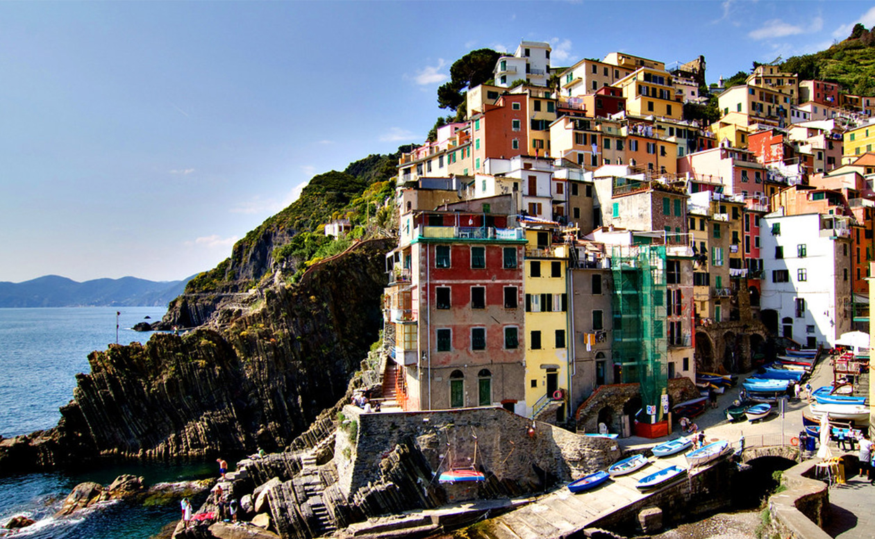 五個漁村沿著利古里亞海的懸崖分布,彼此間被葡萄園、橄欖樹和蜿蜒的小徑相連。風景非常優美,也保留深度的義大利傳統漁村文化,在 1997 年被列入聯合國世界文化遺產。
