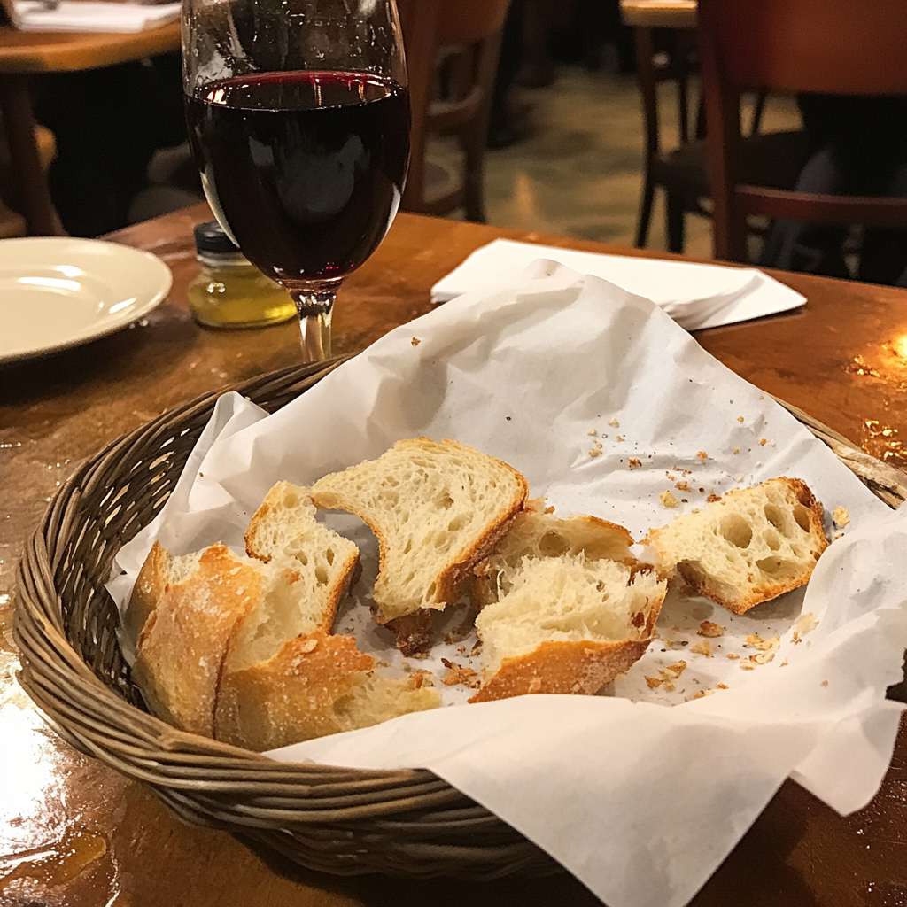 義大利人不常在菜餚上桌前就大嗑麵包。除了有些麵包籃中也會給細細長長、脆脆的「麵包棒」(grissini)是餐前無聊嗑牙的點心,其他的麵包都會留著等主菜上桌。