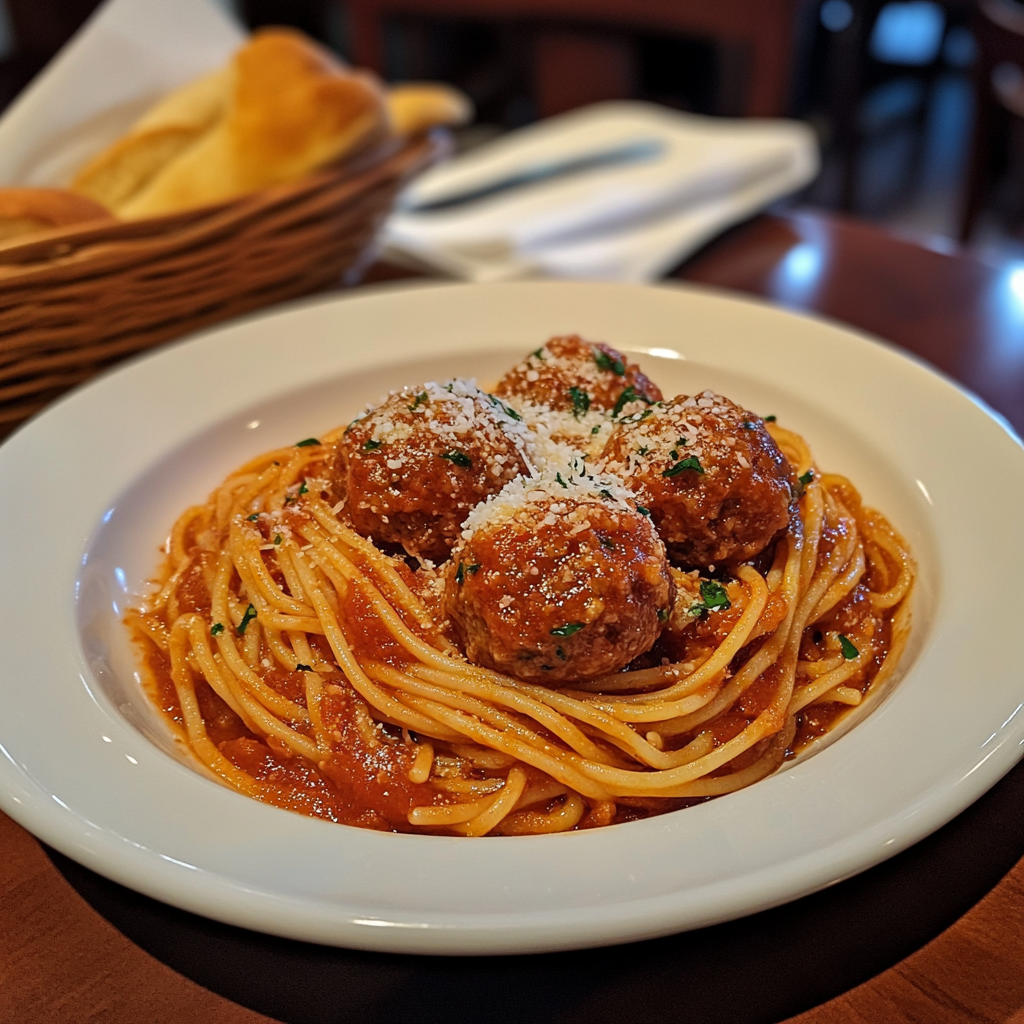而隨著移民的經濟條件改善,結合美國人愛吃牛絞肉的習慣,原本清冰箱的南義日常料理也開始演化,變成以牛肉為主,追求爽感超大顆的肉丸義大利麵(比獅子頭還大,一盤三顆就很飽了)。
