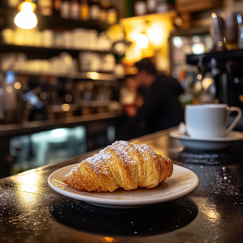 典型的早餐包括一杯 Espresso 或 Cappuccino,搭配甜可頌(Cornetto),內餡種類豐富,如開心果醬(Pistacchio)、杏桃醬(Albicocca)、巧克力醬(Cioccolato)或奶油(Crema)。