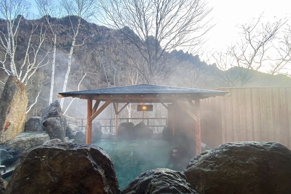 這裡是造就青池神祕藍色的源頭!帶您探訪溫泉水從岩縫傾瀉而下,在冷空氣中激起陣陣白霧的動態絕景。