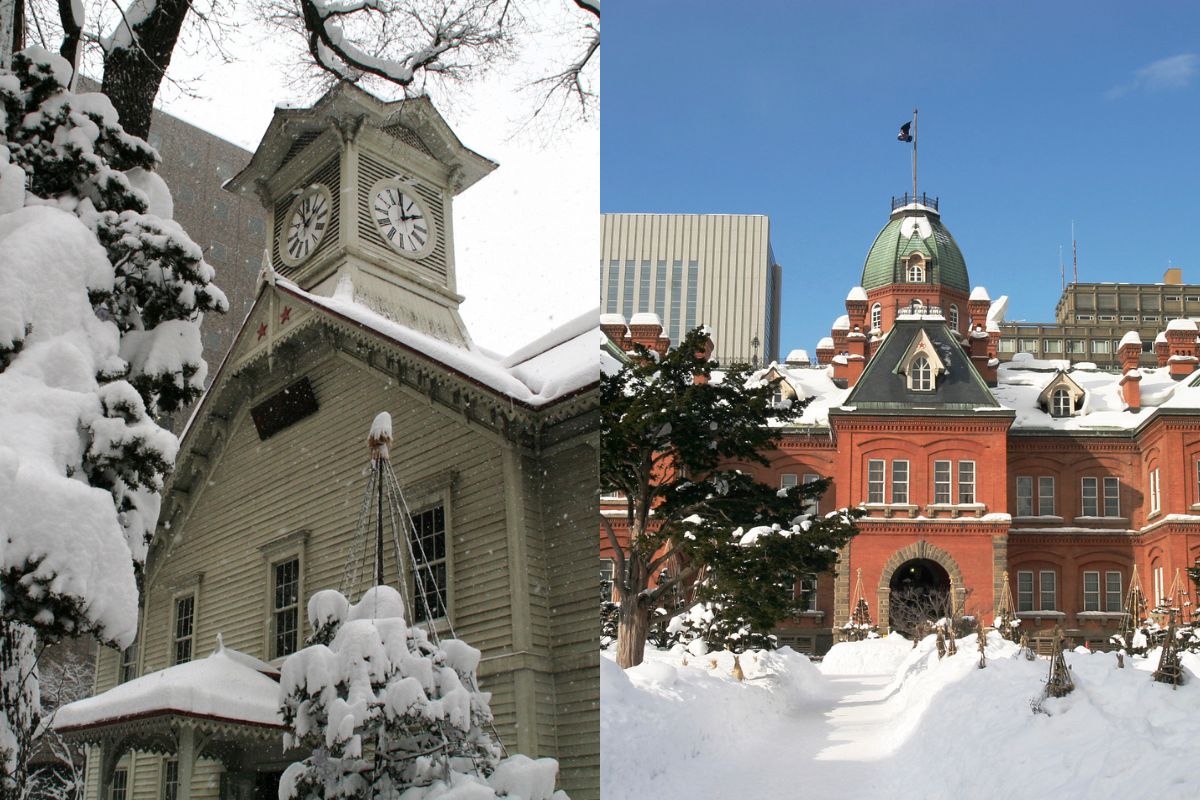 純白的時計台是札幌精神象徵,散發濃濃的復古風情;而有「紅磚廳舍」之稱的舊道廳,則以華麗的巴洛克式建築,在白雪襯托下顯得格外耀眼浪漫。這兩座百年古蹟在現代高樓群中傲然挺立,充滿迷人的衝突美感!雖然行程安排是乘車路經,但這絕對是一秒抓住眼球的絕佳街景。快準備好手機,透過車窗捕捉這份專屬於札幌的古典與優雅,感受雪國都會的百年底蘊吧!